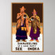 Vintage See India travel poster promoting Darjeeling showing musicians in exotic dress "At a Lama Dance."