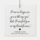 This beautiful memorial Christmas ornament is a beautiful way to remember and honour the one who has passed, but you will always love and cherish. It’s perfect as a gift for a widow or widower, so they can feel comfort in their heart. The wording is "I can no longer see you with my eyes, but I can feel you in my heart forever" with a burgundy heart and your text on the bottom.