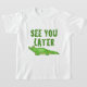 Your little guy or girl will love wearing our See You Later Alligator Funny T-Shirt featuring a cute alligator. Great Gift guaranteed to get a big smile. Available on bodysuits, tees, long sleeve tees, mugs cards, magnets, stickers, buttons, keychains, tote bags and more! Great New baby gift or A baby shower gift
