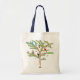 A seed grows into a tree in this fun nature tote bag. Illustration is done in a folk art type of style. Leaves of a variety of green shades. Lots of animals are hanging out in (or around) the tree: blue jay, male and female cardinals, robin, owl, pileated woodpecker, snake, two squirrels, butterflies, sleeping bat, bees, lady bugs, iguana, caterpillars, and one well-hidden tree frog with red eyes. A fun Earth Day tote bag.