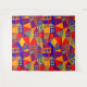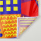 An original abstract pattern made up of triangles and rectangles decorated in various way which kind of look like buildings and houses.