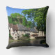 Throw pillow with the castle and the quaint historic village of Ségur-le-Château with its half-timbered houses alongside Auvézère river in Limousin, France.
