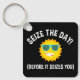 Seize The Day! (Before It Seizes You.) This is a cool funny gift for a man or woman who wants inspiration, but also has a sense of humour and enjoys sarcasm. Great motivational accessory for someone who laughs at sarcastic jokes. Features a cartoon graphic of a smiling sun with sunglasses.