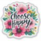 A colourful arrangement of pink and yellow flowers surrounds the bold message urging people to choose happiness. This uplifting visual blends nature's beauty with an inspiring reminder of positivity, perfect for brightening anyone's day.