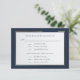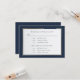 Cette écriture marine sur fond blanc avec une bordure dorée et bleue marine est une carte de réponse RSVP et une carte de sélection de menu élégantes. Le dos a un fond bleu marine avec vos noms et une esperluette dorée. Peut être utilisé pour les mariages, les renouvellements de vœux ou les anniversaires