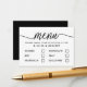 Personnalisez facilement ces cartes de sélection de menu avec votre propre libellé en utilisant la section "personnaliser ce modèle" ou cliquez sur le lien "customiser plus loin" pour changer les styles, les couleurs et la mise en page de police en suite. Il y a également de la place au dos de la carte pour ajouter plus de texte ou une photo de votre choix.