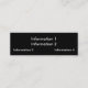 Mettez votre nom de la société dans les lettres blanches audacieuses sur la bannière du regard 3d comme montré, ou changez facilement la couleur et/ou le style de police, et toute autre information sur l'avant et sur le dos de cette plaine, mais de carte de visite de regard élégant et professionnel. L'arrière - plan noir attirant et dynamique peut également être facilement changé en n'importe quelle couleur. Cliquez sur juste dessus la "personnaliser il" et alors "éditez" et alors "arrière - plan" pour changer la couleur. , Mais une carte très chique et promotionnelle simple et simple pour toutes affaires ! Montré est le populaire, plus petit, carte de visite de taille de profil. Deux autres tailles sont disponibles.