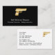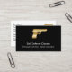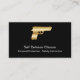 Self defence business card you can customize with powerful two side design that includes includes a simulated gold handgun along with text layout you can personalize. Designed for a hand gun safety or self defence school, or gun shop.