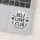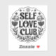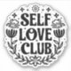 Self love club aesthetic sticker black and white flowers. Inspirational quotes to take care of yourself. Cute floral mental health lettering for women and girls stickers.