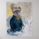 Self-Portrait by Mary Cassatt, watercolor on paper c. 1880, depicts the artist seated behind her sketch pad with brush in hand, wearing a dark blue dress and tall hat with visor that shades her face tied under her chin. The painter gazes intently at the viewer as if surmising or creating a portrait of them, reversing the effect of the typical portrait painting. Cassatt deploys the watercolor medium to great effect with loose, broad, sketchy pools of liquid colours that contrast light, dark, warm and cool tones that allow the paper ground to shine through in many areas. The intent expression on her face belies the seriousness with which she took her mission as an artist, as well as capturing her warmth, empathy and humanity.