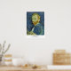 National Gallery of Art image of one of many self portrait paintings by Dutch painter Vincent van Gogh, this one in blues with painter holding palette painted in 1889. Customizable identifying text below image.