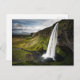 This photo features the Seljalandsfoss waterfall with cloud formation at distance in Iceland.