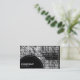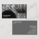A business card template with a black semi-circular panel decorated with a white dotted line in the bottom left for your Company name and business type. The semi-circular panel is placed over a photo or artwork background (which can also be changed). Name and other contact details on the reverse.