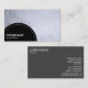 A business card template with a black semi-circular panel decorated with a white dotted line in the bottom left for your Company name and business type. The semi-circular panel is placed over a photo or artwork background (which can also be changed). Name and other contact details on the reverse.