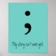 Semicolon & My story isn't over yet; printed on a poster.