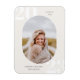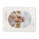 Rounded photo frame, senior class graduation announcement magnet. Soft ivory beige background and white graduation year numbers with template lines for class of year, graduate's name and school.