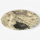 Senior graduation paper party plates with image of rolled diploma and graduation cap against a sepia background.