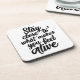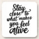 Dessous de verre inspirant avec la phrase "Restez près de ce qui vous fait vous sentir vivant".