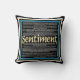 des expressions de sentiment embrassent ce coussin ainsi qu'un graphique audacieux du mot Sentiment. Le côté arrière est noir solide mais la couleur peut être changée en vert olive, blanc, bleu ou or pour garder la couleur design.