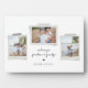 Plaque photo photographique de sentiments gais. Caractéristiques, 3 photos encadrées avec accents de ruban lavi style scrapbook, deux lignes de texte modèles pour votre message et des noms avec détail coeur en noir sur blanc arrière - plan couleur.