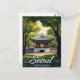 Transport yourself to the heart of South Korea with this beautiful vintage travel design featuring the iconic Hyangwonjeong Pavilion at Gyeongbokgung Palace in Seoul. The classic illustration captures the traditional Korean architecture of the pavilion and the serene pond surrounded by lush trees. Perfect for K-culture enthusiasts, history lovers, or anyone who cherishes East Asian travel art. This retro piece is an ideal souvenir or gift, celebrating the timeless beauty of Seoul's royal heritage.