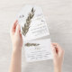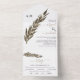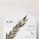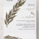 Sepia eucalyptus branch in purple colours all in one winter wedding invitation. A lovely design for your wedding featuring your initials, a branch of eucalyptus with leaves in old sepia style and the names in script typography. The RSVP card can be detached.