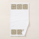 This towel set features a bold pattern of Spanish tile designs in warm grey brown sepia tones. This pattern makes a great accent for the wash cloth, hand towel and bath towel.