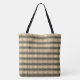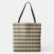 Sepia-toned tote bag with a beehive pattern behind the colour.
