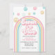 Sept est une ambiance Invitation d'anniversaire 7ème inspirée de l'arc-en-ciel rétro avec des polices et des couleurs des années 70.