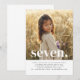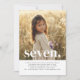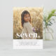 Une simple invitation du septième anniversaire avec votre propre photo et les mots "sept" en haut.