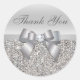 Autocollants personnalisées et élégants en Merci d'argent, pour les marques de faveurs ou d'enveloppes, avec un motif de jolis paillettes d'argent imprimé, un joli arc et ruban en argent brillant et joli bijou en diamant imprimé. Le texte, la police et la couleur de la police peuvent tous être customisés. Si vous avez besoin d'aide pour customiser votre produit, veuillez me contacter par l'intermédiaire de mon magasin. Je serai heureux d'aider. J'ai des produits correspondants dans mon magasin.