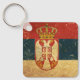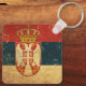 Keychain with the flag of Serbia in vintage distressed grunge old style design. This scratched design features the Serbian flag in retro vintage style. This design is a great way to show you are proud to be Serbian or to give as a gift to any Serb.