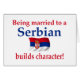 This "Being married to a Serbian builds character!" design with the Serbian flag is one of many original Serbia creations by Worldshop.