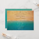 Birdseye view of a sandy beach and a teal-blue ocean, horizontal invitation.