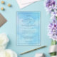 This elegant wedding invitation features a serene gradient of soft blues, creating a calming and sophisticated atmosphere. The minimalist design showcases clean lines and ample negative space, with a mix of bold serif and delicate script typography that adds an intimate touch. Perfect for couples seeking a modern yet formal look, this invitation is ideal for celebrating love in style. Its straightforward layout ensures all essential details are easily readable while maintaining an inviting mood.