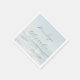 This wedding napkin features a serene ocean scene with gentle waves and a soft blue and white colour palette, creating a calming atmosphere. The design includes elegant script typography for the names, paired with a minimalist sans-serif font for additional text, all centred to maintain balance. The realistic depiction of the seascape enhances the tranquil mood, making it perfect for celebrating significant life events. Ideal for weddings, this napkin combines nature's beauty with sophisticated style, offering an inviting and memorable touch to your special day.