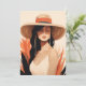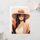 Dive into tranquillity with our Serene Boho Portrait Card, depicting a woman with closed eyes, a wide-brimmed hat, and long earrings. Abstract tropical leaves in warm tones frame her peaceful expression, embodying boho calm.