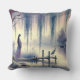 Serene Fantasy Lake with Willow and Heron Throw Pillow