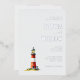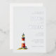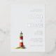 This elegant foil invitation features a minimalist layout with a charming red and white lighthouse illustration at its center, set against a soft light gray background. The design employs a classic serif font for the customizable text, creating a formal and traditional aesthetic that complements the serene nautical theme. With ample negative space, the invitation exudes a sense of calm sophistication, making it perfect for weddings or special occasions. The inclusion of Hebrew text adds cultural depth, while the warm glow from the lighthouse's lantern room enhances the inviting atmosphere.
