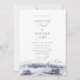 Serene Landscape, abstract watercolor wedding invitation. Features, watercolor elements in shades of blue with coordinating sold navy blue colour backing.