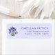 These return address labels feature a serene lavender illustration paired with elegant, centred text on a soft purple background. The design combines a classic serif font with a nature-inspired theme, creating a sophisticated and calming aesthetic perfect for personal correspondence. The minimalist colour palette of purples and greens enhances the tranquil mood, making these labels ideal for those who appreciate understated elegance in their stationery.