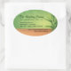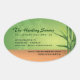 A tranquil scene is the focus of this sticker geared towards day spas, salons, massage therapists, life coaches, yoga instructors or anyone working in the spa or aesthetics industry. Bamboo stalks make up the right edge of the sticker, printing in front of a wooden surface holding a stack of massage rocks. A soothing green background with a watermark of bamboo leaves completes the image. Use as package or envelope seals or as a simple promotional piece. Available with matching products.