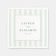 These wedding napkins feature a minimalist and elegant design with vertical stripes in soft shades of mint green and white, creating a serene and fresh atmosphere. The central white square highlights customizable names and date in classic serif typography, adding a touch of sophistication. Perfect for formal occasions, the clean lines and subtle pattern emphasize clarity and focus, making them ideal for weddings that celebrate simplicity and tranquillity.