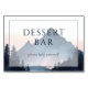 This is a minimalist style image featuring a tranquil mountain landscape at dusk, with soft pastel hues blending into the sky. The text "DESSERT BAR" stands prominently in elegant typography, inviting guests to indulge in sweet treats. Below it, the phrase "please help yourself" adds a warm and welcoming touch. The composition evokes a sense of calm and relaxation, perfect for setting a serene atmosphere at an event or gathering where guests can enjoy desserts freely.