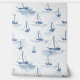 Serene Navy Blue Sailing Boats Pattern Wallpaper