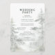 This wedding program features a serene, nature-inspired design with a vertical layout and soft pastel colors. The background is light beige, complemented by muted greens and grays in watercolor tree illustrations that create an ethereal atmosphere. Elegant typography highlights the event details, with customizable placeholders for names, dates, and locations, ensuring clarity and sophistication. The overall style is minimalist and tranquil, perfect for celebrating a formal wedding ceremony surrounded by natural beauty.