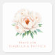 This elegant wedding sticker features a beautiful floral design with soft pink peonies and green leaves, creating a serene and graceful aesthetic. The muted coral text adds a subtle contrast to the white background, enhancing the overall charm of the design. Perfect for expressing gratitude, this sticker is ideal for weddings or special occasions, capturing the warmth and joy of the moment. Its realistic yet stylized representation makes it a delightful addition to any celebration.