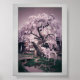 This enchanting poster captures the serene beauty of a majestic sakura (cherry blossom) tree in full bloom, with cascading pink flowers gently framing a peaceful Japanese garden scene. A charming stone bridge crosses over a small stream, enhancing the traditional atmosphere. The soft tones and natural elegance of this image evoke a sense of calm and timeless beauty, making it a perfect addition to any space for those who appreciate the tranquillity of nature and Japanese aesthetics.