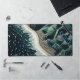 Serene Shores: This stunning top-down illustration captures the harmony of land and sea, featuring waves gently breaking on sandy beaches with lush green mountains in the background. Rendered in soothing shades of dark blue-green, the artwork evokes a sense of tranquility and balance. The intricate detail of the ocean’s patterns meeting the shore, paired with the trees lining the water’s edge, enhances the peaceful atmosphere. Created in a woodcut print style with simple lines and a flat design, the piece is reminiscent of hand-drawn animation, offering a timeless, serene depiction of nature’s beauty.