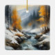 Breathtaking serene beaut winter watercolor painting featuring a crystal-clear river winding through snowy terrain, surrounded by trees. Perfect for art lovers.